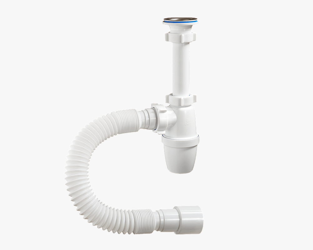 A-32059 Orio ბოთლის სიფონი პატარა კორპუსით 1 1/4"х40მმ მოქნილი მილით 40-40/50